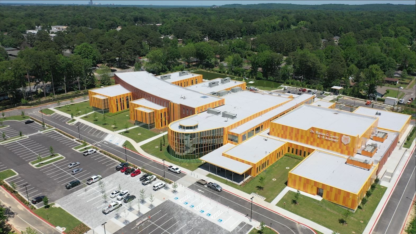 The Dr. Marian G. Lacey K-8 Academy will support 1,484 students plus faculty and staff. There are 84 classrooms, a cafetorium and competition gym for 1,500 people. A voluminous library greets students and guests as they enter the building, leading into a welcoming concourse that connects all major public portions of the school. Also included are a media center, kitchen, science labs, music rooms, art rooms, and administration.